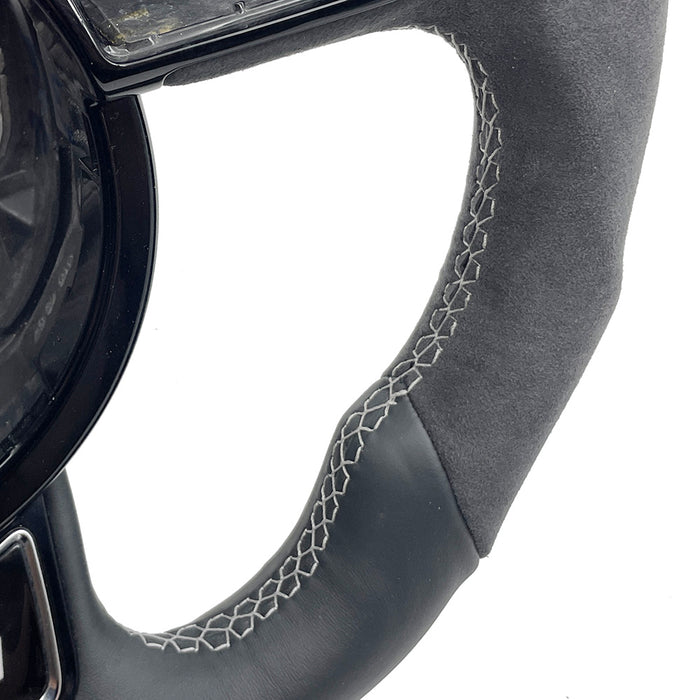 Multi functional semi suede leather flat bottomed sports steering wheel, suitable for Audi A6 C7