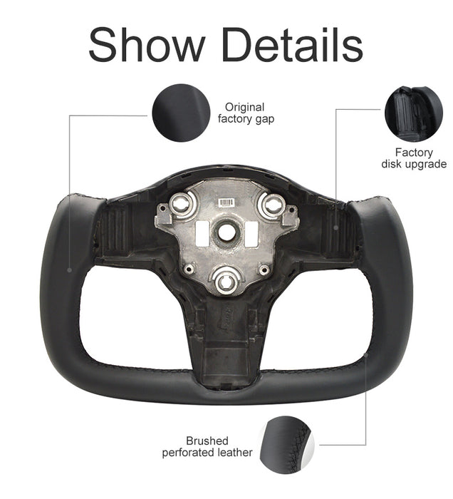 For Tesla Model 3 Y Bare Yoke Steering Wheel 2017 2018 2019 2020 2021 Customized Black Leather