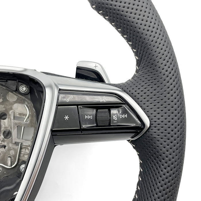 Fully perforated leather flat bottomed steering wheel, For Audi A6 C8