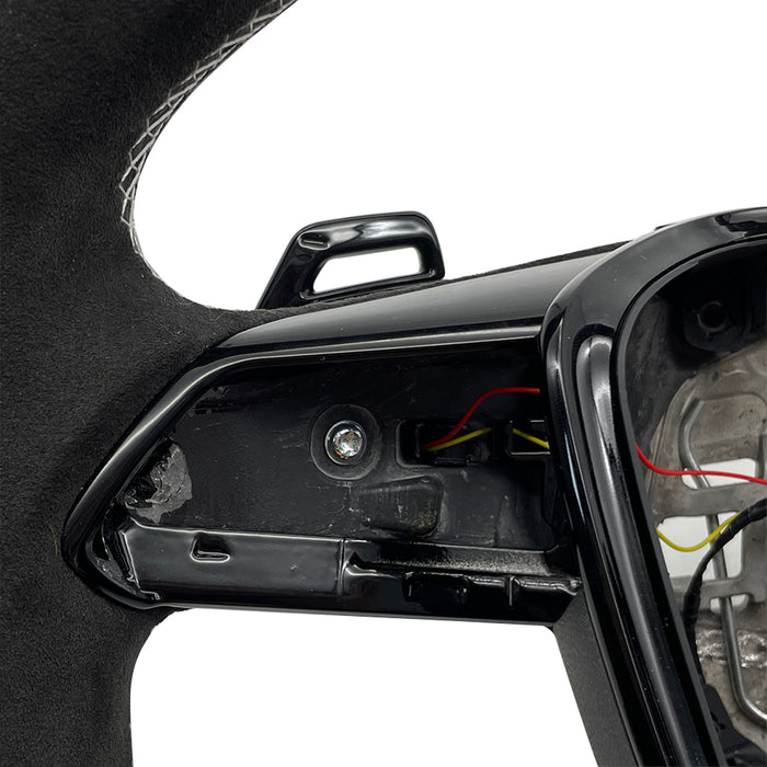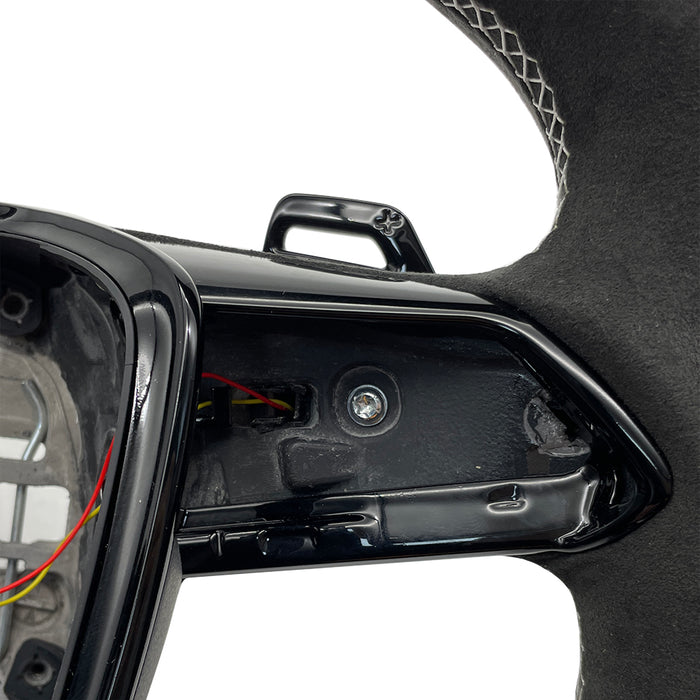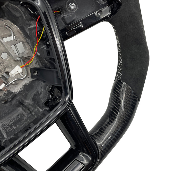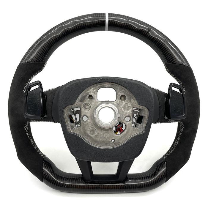 Multi functional carbon fiber suede white line flat bottomed sports steering wheel, For Audi A6 C8